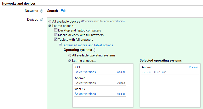 Oltre alla possibilità di veicolare gli annunci soltanto verso un preciso sistema operativo mobile – visibile, ad esempio, solo su iOs o su Android -, con le nuove opzioni la questione diviene ancora più definitiva: l’inserzionista potrà scegliere se rendere visibili i suoi annunci solo su specifiche versioni dei sistemi operativi, come “da Android 4.0 sino alle versioni superiori”.