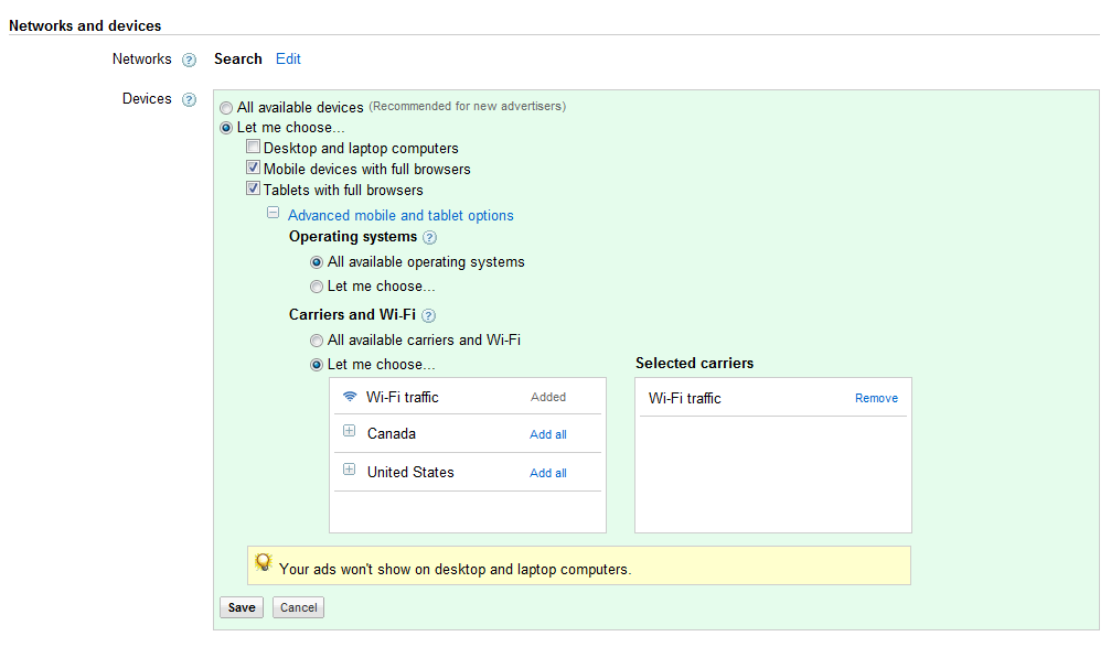Se quindi l’inserzionista ha intenzione di proporre, ad esempio, video promozionali o comunque contenuti che richiedono una larghezza di banda elevata, potrà decidere di impostare tutto tramite le nuove opzioni di AdWords.